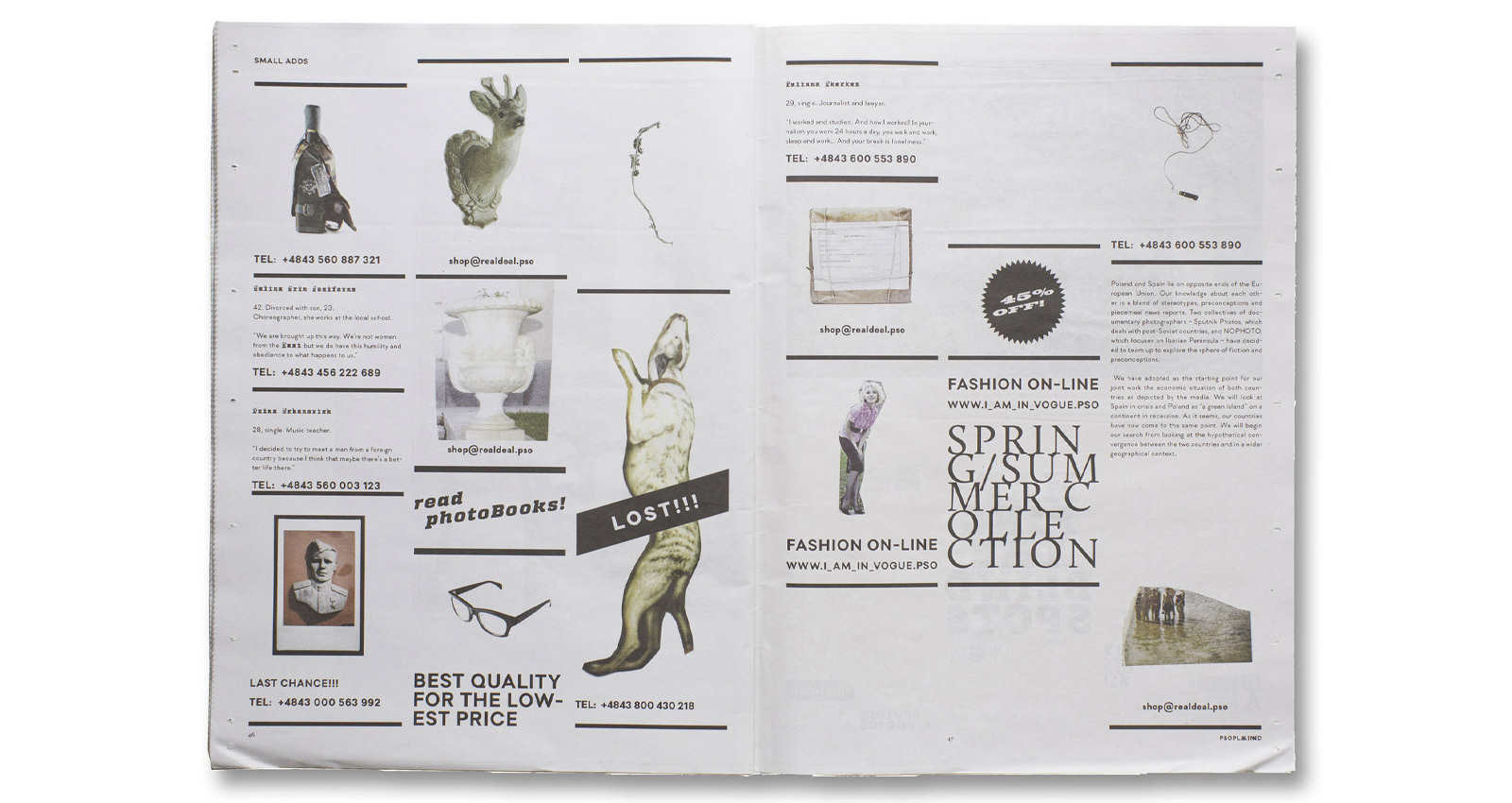 48 pages, 255 x 350 mm, photo edit / text edit / photo & text collages by Rafał Milach & Ania Nałęcka, newsprint, published by NOPHOTO, 2014